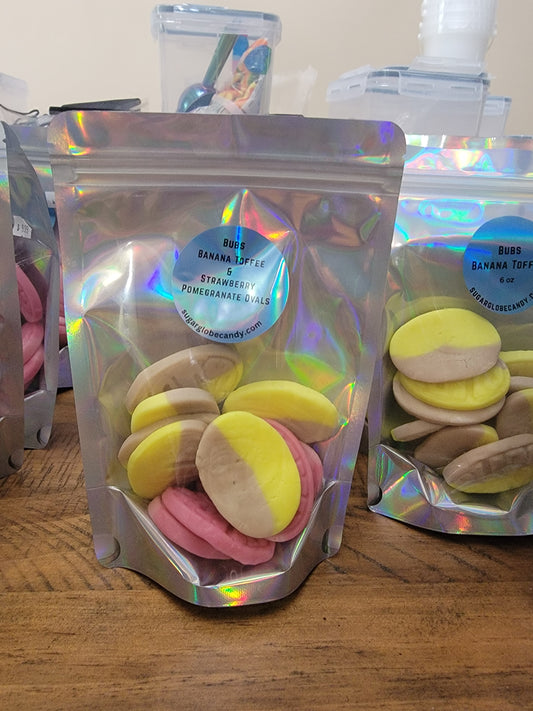 Bubs mix Wild Stawberry and Pomegranate and banana toffee Ovals